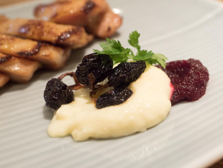 付け合わせにもひと工夫があり、写真↑はビーツ、マッシュポテト、