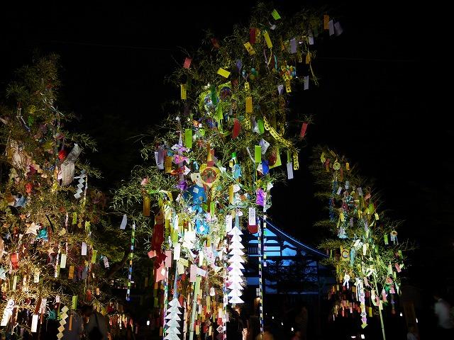 日没には境内がライトアップされ、七夕会もクライマックスを迎えます。