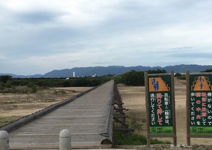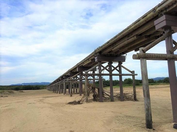 「流れ橋」と言われる様に、この橋は川が増水すると橋桁が流される独特の構造になっています。