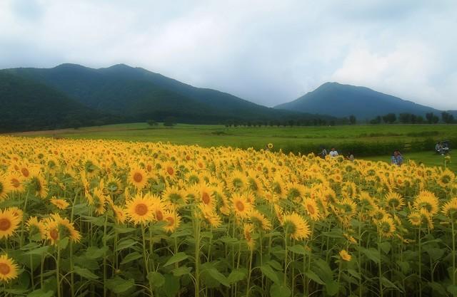 ひまわり畑に行ってみてください。お盆の頃が見ごろです。