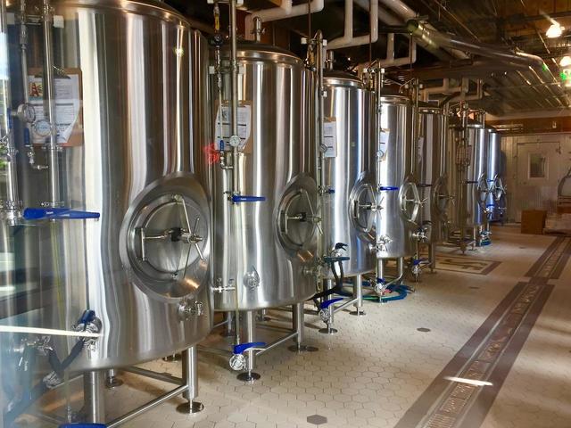 醸造所なんだからタンクもある! 床ももピカピカに清掃してある。