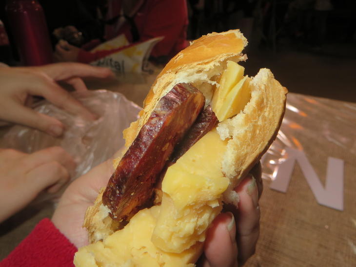 その場で、先ほどの鹿のサラミと一緒に パンも買ってサンドイッチに。