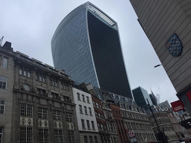 きっと眺めが良くて気持ちいい場所なんだろうなーって、期待でワクワクしながら向かったのが、こちらの高層ビル。この一帯はロンドンの中でもシティと呼ばれる金融街で、アメリカのNYにあるウォール・ストリートに匹敵するような地域です。