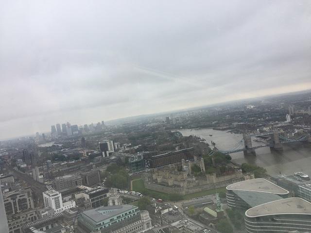 先ほど34階って書きましたが、実際には34階~37階に相当するそうです。東京の高層ビルやスカイツリーに比べたら遥かに低いとはいえ、タワーブリッジやロンドン塔、セントポール大寺院など、ロンドンを象徴する名所がよ~く見渡せるのが高ポイントでしょ?