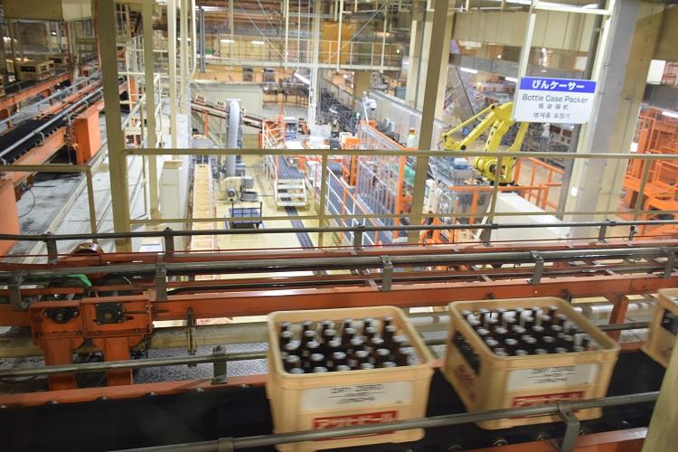 映写室で映像を見た後、グループにわかれて見学です。ビールの生産ラインでは、ものすごい速さで大量のビールが流れていきます。ビールの原料のホップを試食できるコーナーがあるのですが、これが意外に美味しいですので、ぜひ食べてみて下さい。