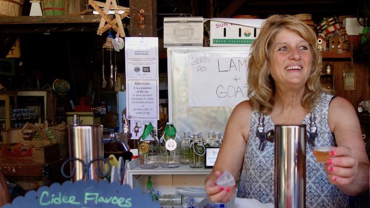 また、ホワイトネクタリンや自家製ハードサイダーも美味。ハードサイダーは、昨年9月から作り始めたそうですが、いくつもの受賞歴をもつという実力派。試飲を勧めてくれた方(写真)は、チェリーパイ味がお気に入りとのことですが、オリジナルのりんごや特別に出してもらった洋梨が私は好きでした。かわいい瓶に入っているのも嬉しいです。