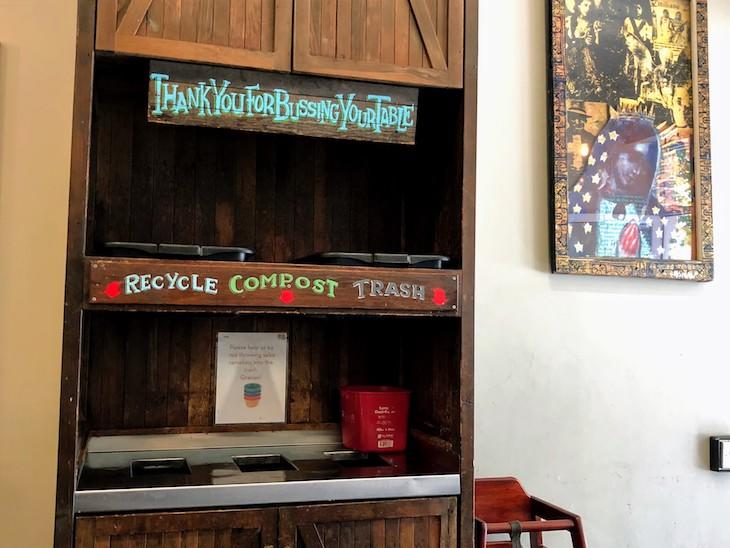 グルメファーストレストランはセルフサービスが基本です。食べ終わったら、使い終わった食器をステーションに戻すようにしましょう。サンフランシスコらしくゴミ箱は「リサイクル用」「堆肥用」「ゴミ用」の3つに分かれます。