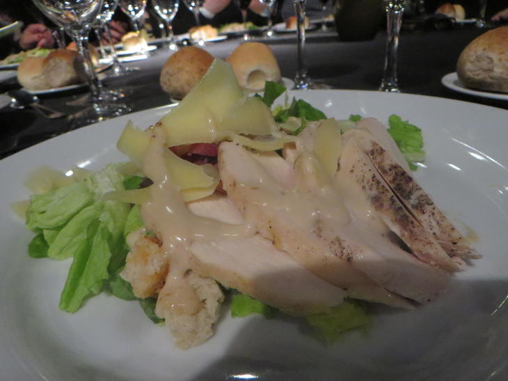 賞の発表の合間のディナーはさすが、最初はチキンのシーザーサラダ