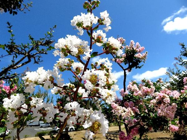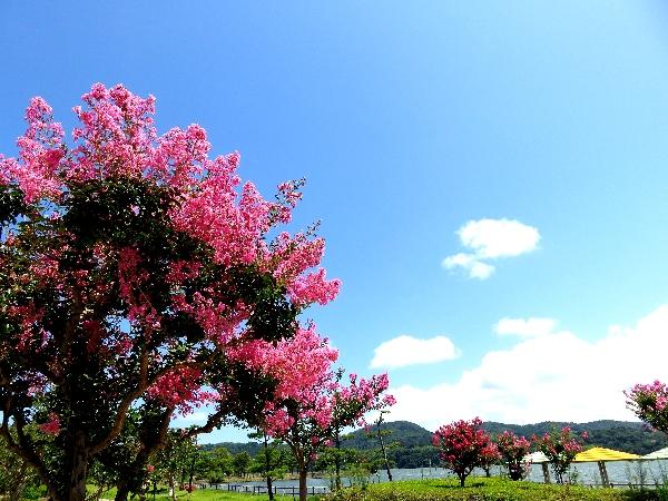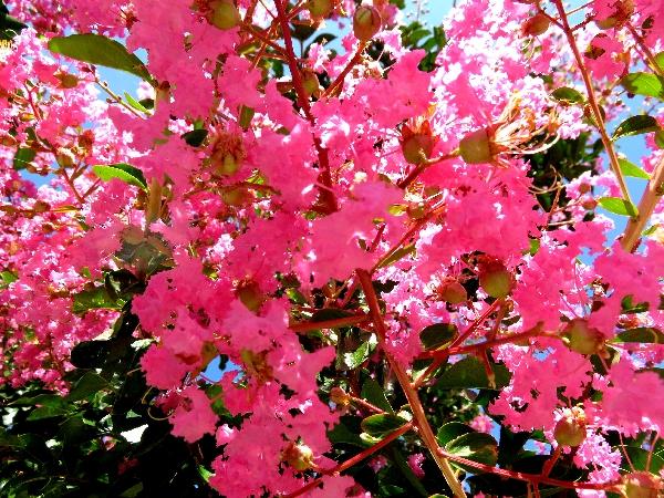 ちょうど、今の時期サルスベリの花が青空の下で眩しいぐらい映えています。