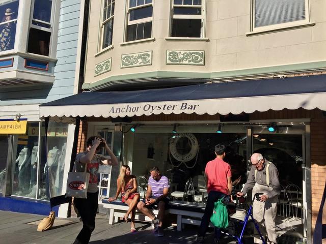 日本のレストラン紹介で掲載されていたらしいアンカーオイスターバーは、ミシュラン調査委員がお勧めする "ビブマーク(Bib)レストラン" 美味い物と流行に敏感なお姐たちにも人気のオイスターバーは、カストロエリアの中心部にあり、Fラインのカストロ終点駅から歩いて3分くらい。