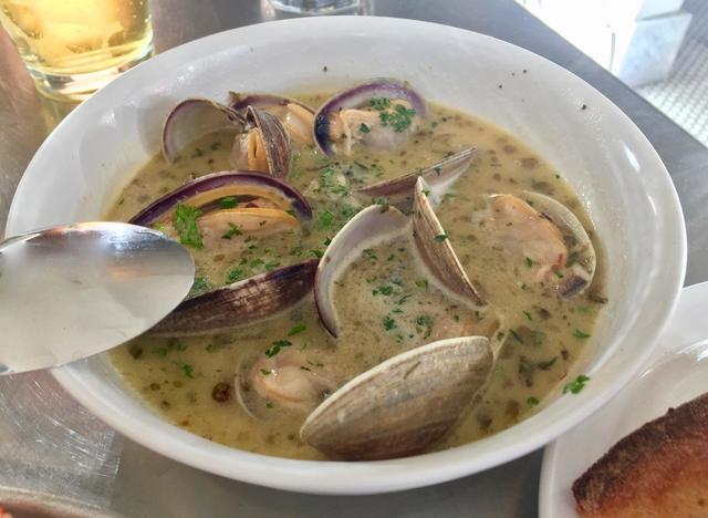 ハーフサイズのクラムチャウダーでも結構たっぷりある。 隣のテーブルに、サンフランシスコの名物シーフード料理 "チョッピーノ(Cioppino)" が運ばれてきた。 聞けばスモールサイズなんだそうだがゆうに二人分はあった、姐さん大喜び♡興奮状態♡ 今回は頼まなかったけど、これもここでは頼むべき料理だね。 サーバーさん(お姐)も何故頼まないのよ〜と言いたげだった、次回必ず頼むぞ!