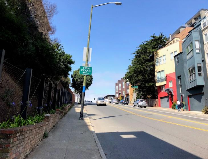 左折してしばらくすると「ツインピークス大通り」が右手の方向に曲がる箇所があります。このまま通りに沿って坂道を登っていきましょう。