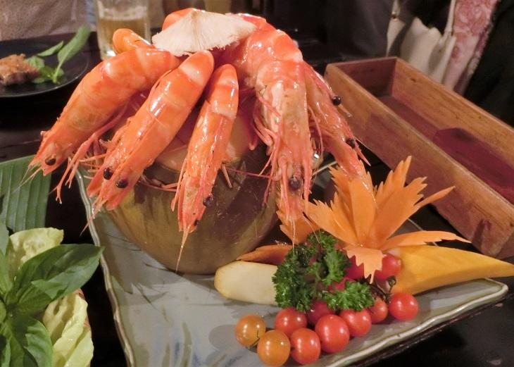 「トム・ハップ・ヌック・ユア」も人気料理。海老のココナッツジュース蒸しです。