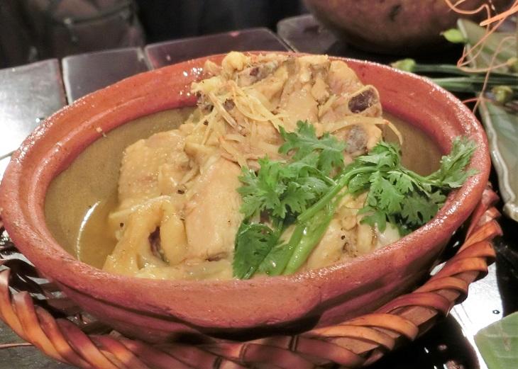 ベトナムの定番家庭料理「ガー・コー・クン」です。鶏肉のブツ切りを甘辛く煮込んだ料理。たっぷり入った生姜の風味が効いています。