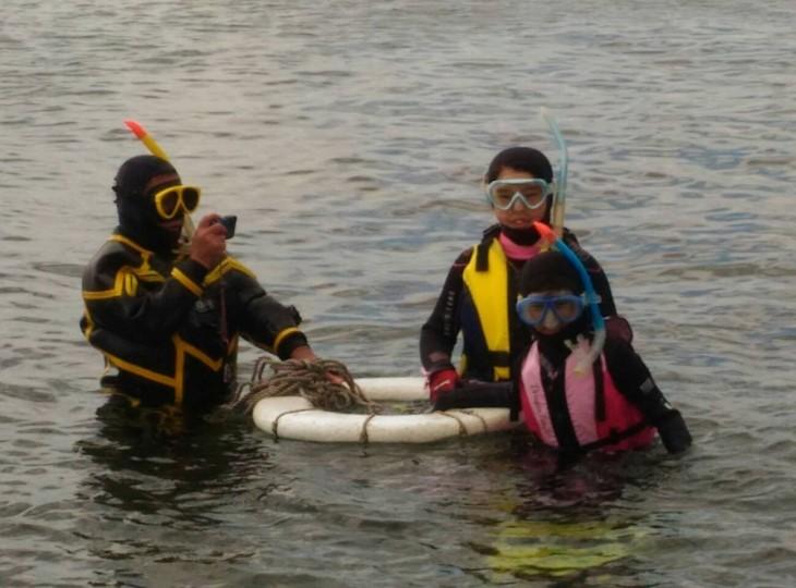 寒くなってもウェットスーツを着れば、魚を見ることができます。