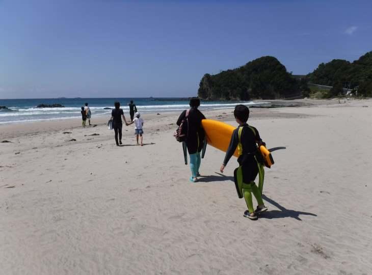 サーフィンのメッカ、入田浜でサーフィンを体験です。