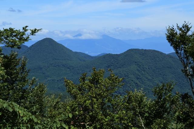 右奥のなだらかなピークは、八溝山。