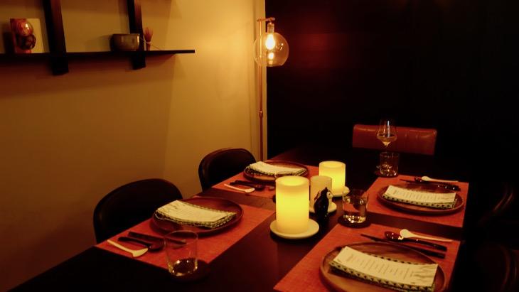 通常はカウンター席なのですが、今回は、奥の「スタディ」席に入れてもらいました。