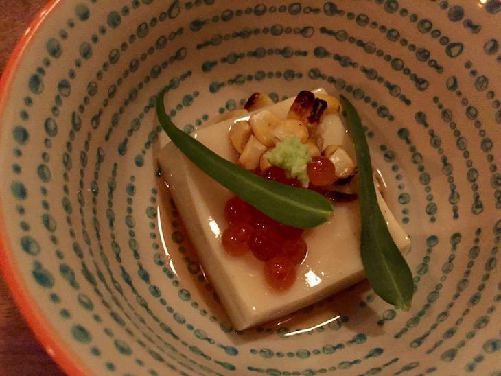 次は、私が多分この日一番美味しい!と思った「Corn Tofu」。イクラの塩辛さと焼いたトウモロコシの組み合わせ、最高です。