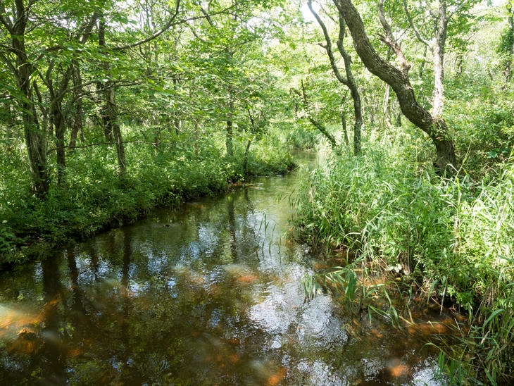 林が続く"ハスカップの小径"に入ると、どこからともなく鳥のさえずりがたくさん聞こえてきます。