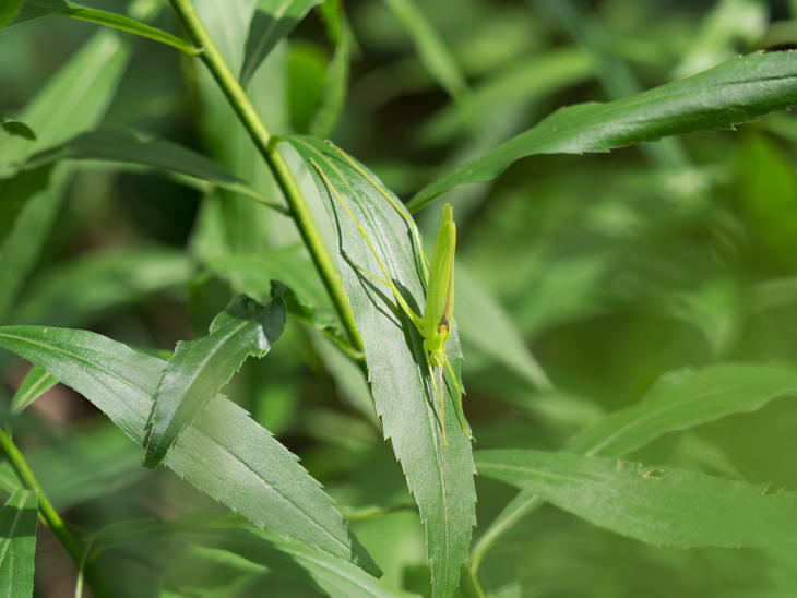 セスジイトトンボやキリギリスなど、元気に活動中の昆虫にも多く遭遇。