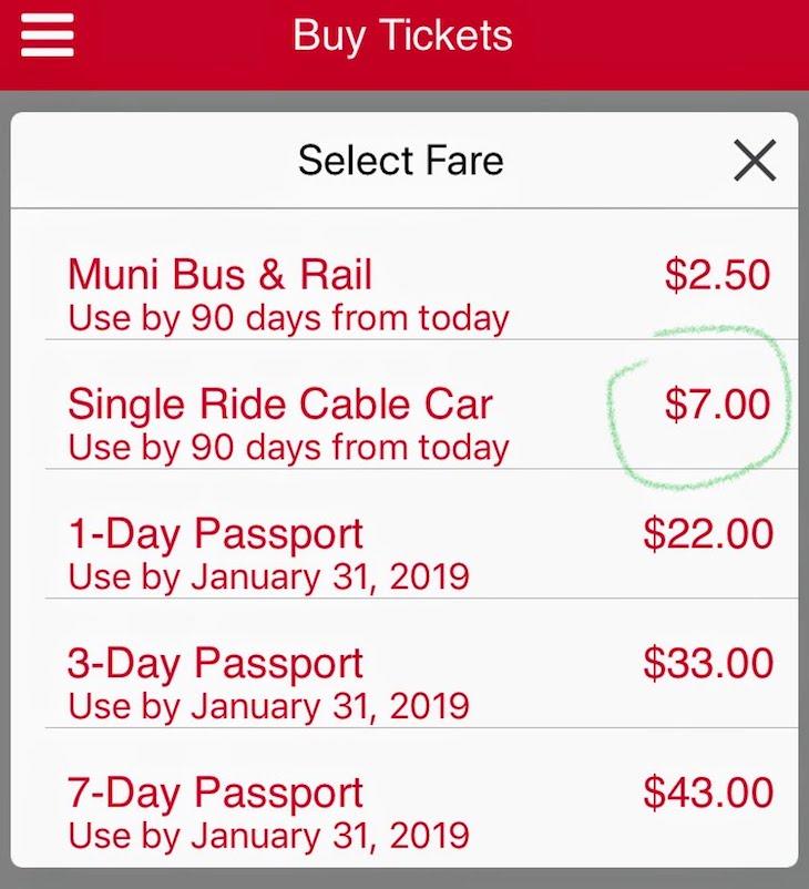 ちなみに片道チケットの料金は7USDとなります(2018年9月現在)。ケーブルカーの他にも、バスやミュニなどを利用するつもりであれば、1〜7day passportなどの観光者向けのチケットもありますよ。