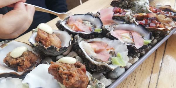こちらの街は牡蠣の養殖が盛ん。あちらこちらのお店で牡蠣を食べることができます。