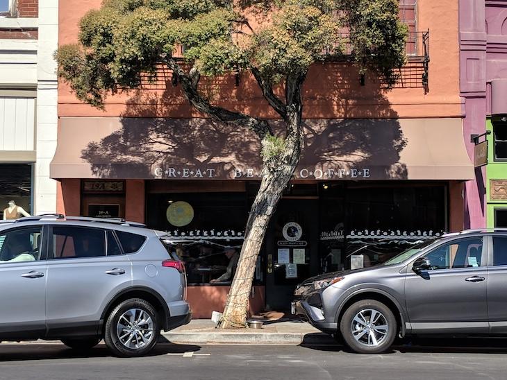 ロスガトス街広場公園の隣には喫茶コーナーのあるパン屋のLa Boulangerや地元のコーヒー屋さんのLos Gatos Roasting Companyがあります。
