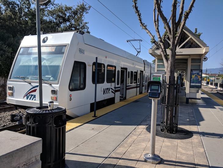 サンノゼ駅では二方向へライトレールが走っています。Mountain View行きとWinchester行きです。Winchester行きを選び、終点のWinchester駅まで移動します。