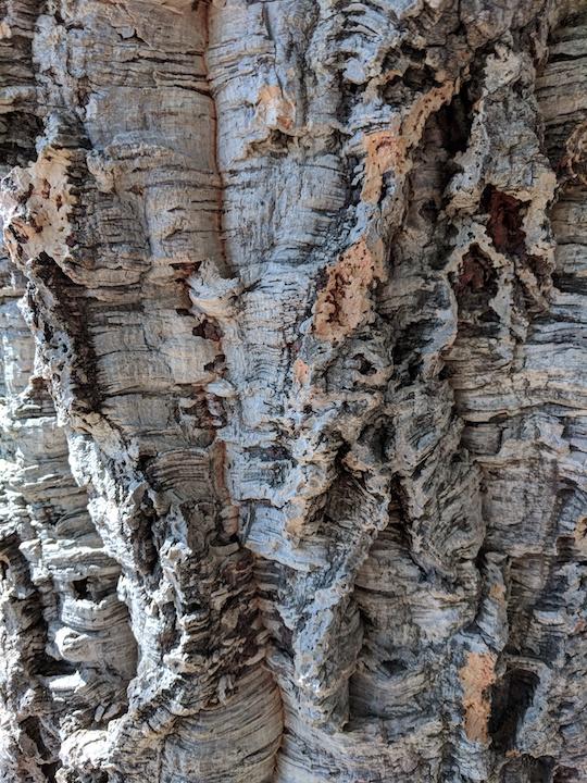 試飲やお買い物を満喫して建物を出たら、その前にある古めかしい巨木を確認することをお忘れなく。コルクの木です。『Cork Oak』と名札がついています。樹皮からはコルクとわかりにくいですが、めくれている部分が見つけられたら、その部分はコルクそのものですから、感動しますよ。