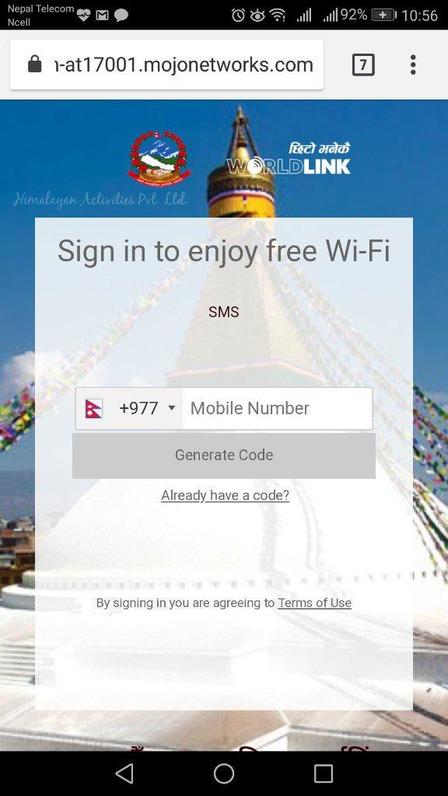 各地で利用可能なネットワークをクリックすると、冒頭のような画面が出るので携帯番号を入力しますと、ログインコードがSMSで送られてきます。これを設定画面に入力するだけです。