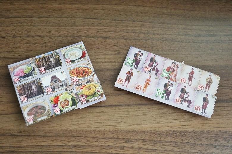 今回配布中のシールは2種類あります。写真左の「๑」のタイ文字が印字されているシールは1バーツ(=約3円)の代わり、右の「๓」のタイ文字が印字されているシールは3バーツ(=約10円)の代わりに使えます。タイ文字になじみのない方は、渦巻模様のタイ文字が印字されているシールは1バーツ、タイの伝統衣装を着ている人が印刷されているシールは3バーツと覚えておくとよいかもしれませんね。