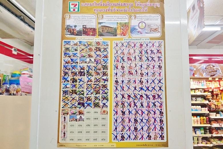 さらには、セブンイレブン内に設置されているボードに、シールを貼り付けることで、タンブン(善行や寄付等を行い、徳を積むということ)することもできます。社会貢献する機会でもありますよ。