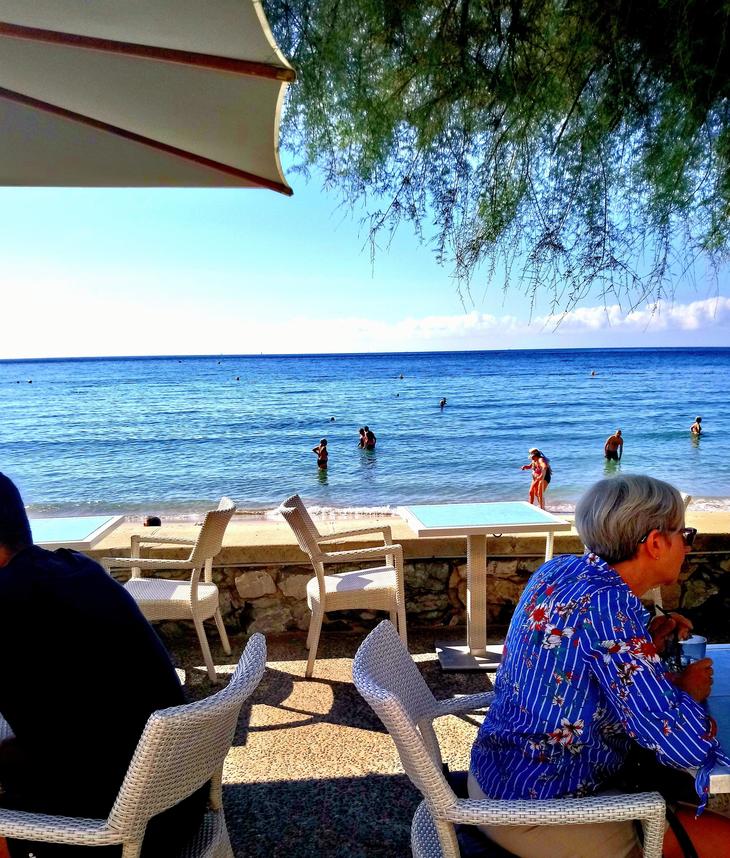 フランス人は冬でもカフェの屋外席が大好き!天気が良ければ気温が多少低くても太陽を浴びながらお茶や食事を楽しみます。本当にビーチ際に席があるのでここでランチをしながらのんびり海を眺めるのも良いですね。