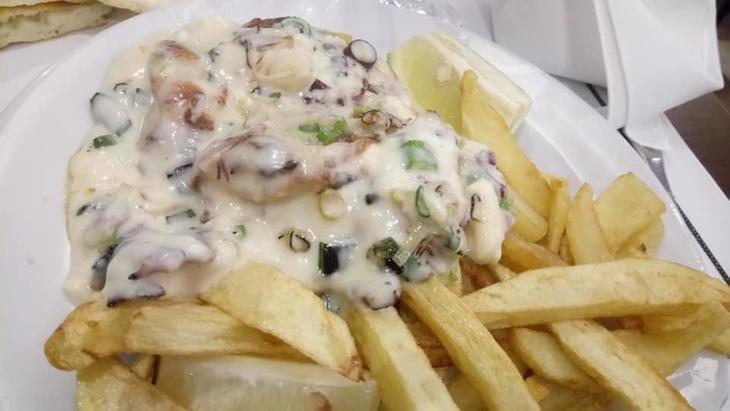 チキンのネギソースにフライドポテトかマッシュポテトが選べます。ネギ味は日本人にはソフトでいいわね、と勝手につぶやいていました。
