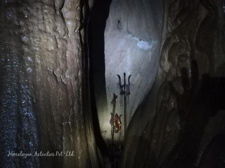 ヒンドゥ教の神が祀られている一番奥まで片道437m、洞窟内の一番広い空間で高さ45mあるとか。中には照明は一切なく、懐中電灯の明かりのみが頼り。地元のガイドさんをつけると、トリスリ(シバ神が持つ三叉の槍)が祀られている場所や、ほら貝・カリフラワー・鶏・王冠・装飾が施されたお城の柱など、いろいろな形に見える岩を照らしながら、奥まで案内してくれます。