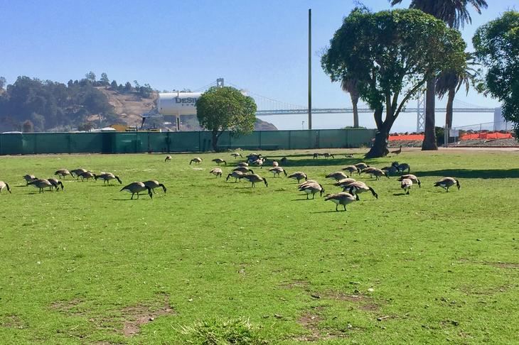 先ずは、トレジャーアイランドの原っぱにギースの団体がのんびり地面つついてた。