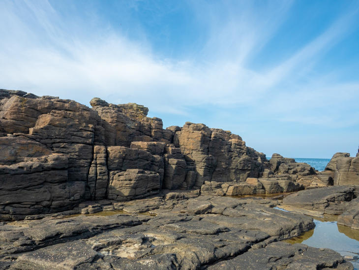 千畳岩で潮の香りや波の音に包まれて深呼吸するだけで、