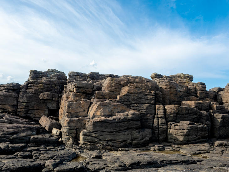 長い時間かけて砂岩が浸食を受けてできたもので、一方、