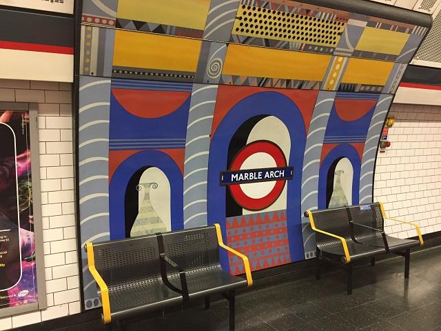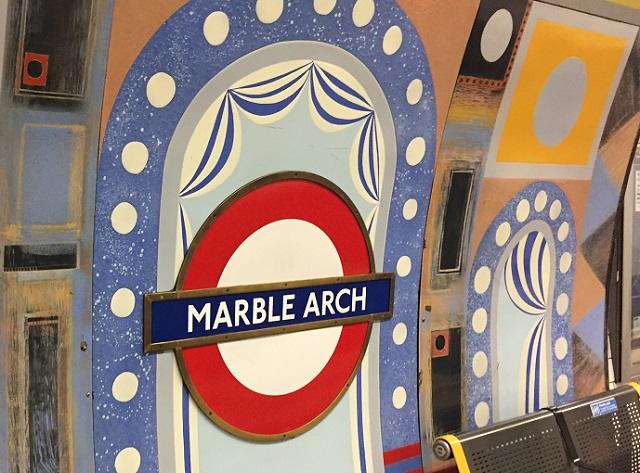中でも私が特に気に入っているのは、マーブル・アーチ駅。駅名の由来は、この駅を出ると立派な大理石の門があるからです。