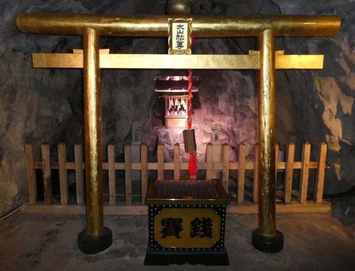 坑内には『山神社』と『黄金の泉・銭洗い場』という二つの金運アップのパワースポットがあります。『山神社』では『黄金の鳥居』に触れ、『黄金の泉・銭洗い場』でお金を洗えば金運アップ間違いなしです!