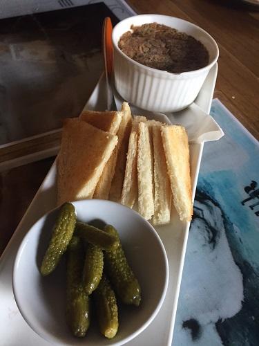 写真だと分かりにくいですが、量がすごく多い。手作りのパテですがレバーの甘みとうまみ。