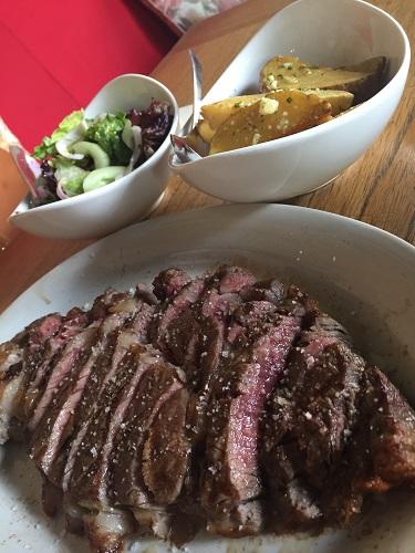 Txuleta(500g、フライドポテトとサラダ付き)395000ルピア(3300円ぐらい)