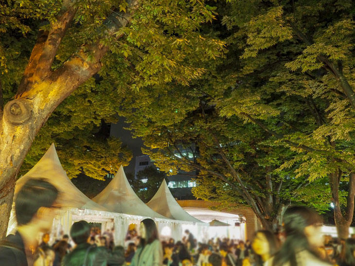 "The site of Autumn Fest 2018 in Odori Park, which is full of people after work and tourists"
