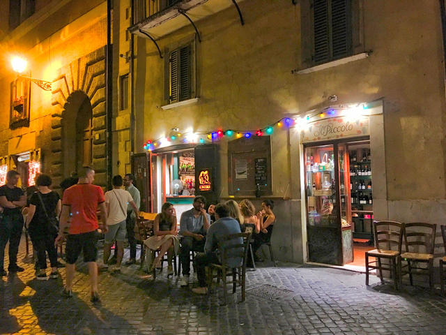 旧市街にあり、ナヴォーナ広場やパンテオンなどからも徒歩圏内と、アクセスも大変便利なロケーションにありますので、飲み屋さんで軽くイタリアのワインなどを飲んでみたい!という方にはおすすめです。