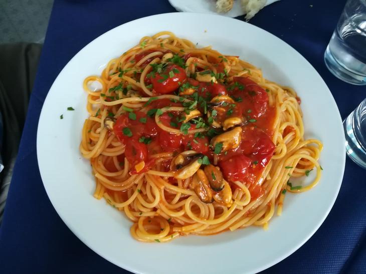 こちらがムール貝とトマトソースのスパゲッティ