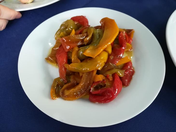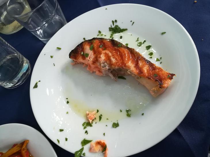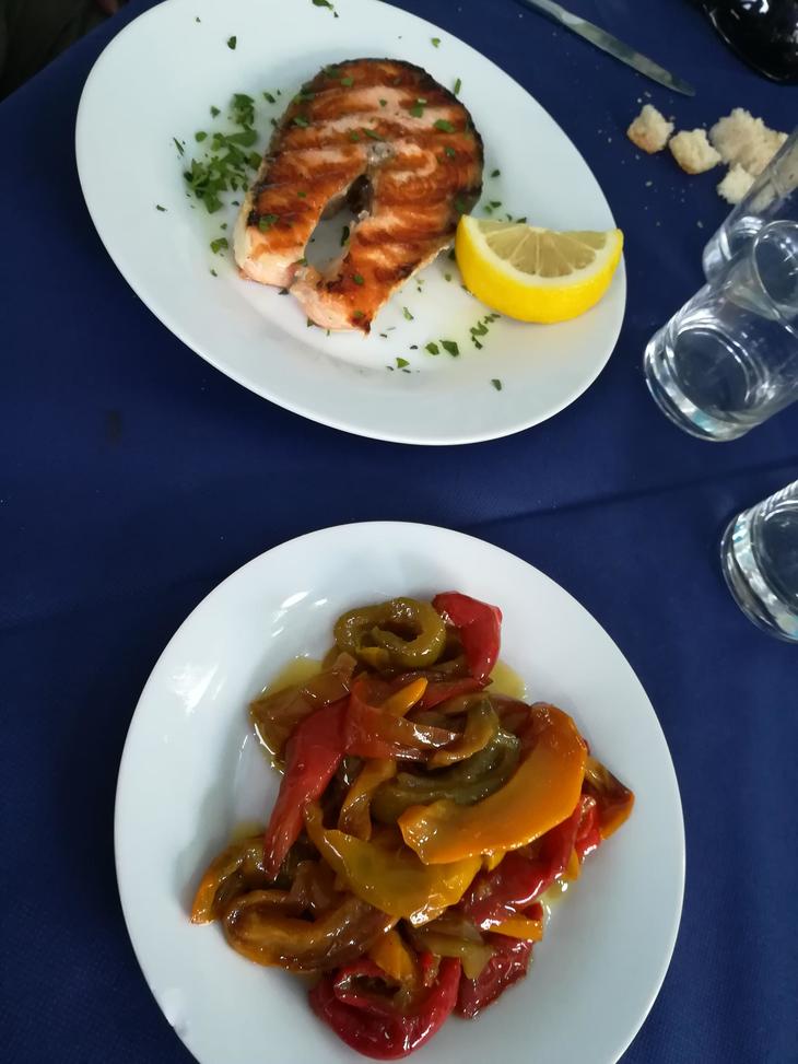 こちらはメイン料理サーモンのグリル焼きと付け合わせにはパプリカのオイル和えを注文
