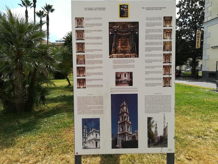 こちらの看板には簡単にポンペイのロザリオの聖母の巡礼聖堂内の説明が書いてあります