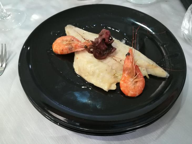 こちらがメイン料理タイのフィレットエビ、タコ和え