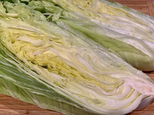 煙が出るくらい熱々の鉄板(キャストアイロン)に茎の部分の切り口を下向きにして焼く。 もし押さえつけるものがあれば上から押さえつけて焼き付ける(小さいフタみたいので上から錘みたいにするといい)農家のお母さんがそこは力強く説明していた。